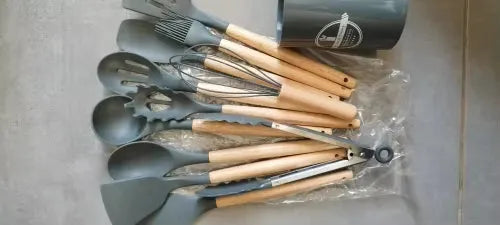 Szilikon konyhai eszközkészletünk gondosan készült azok számára, akik szeretik a főzést és a stílust. A hőálló anyagok biztosítják, hogy az eszközök ne deformálódjanak vagy olvadjanak meg, míg a tapadásmentes felület megkönnyíti az ételek forgatását és fordítását. Elegáns fa fogantyúik kényelmes fogást biztosítanak, és egy csipetnyi kifinomultságot adnak konyhai dekorációdhoz. Legyen szó profi séfről vagy otthoni szakácsról, ezek az eszközök könnyedén és elegánsan kielégítik minden kulináris igényedet. Elengedhetetlen kiegészítő mindenkinek, aki szeretné fejleszteni konyhai élményét.