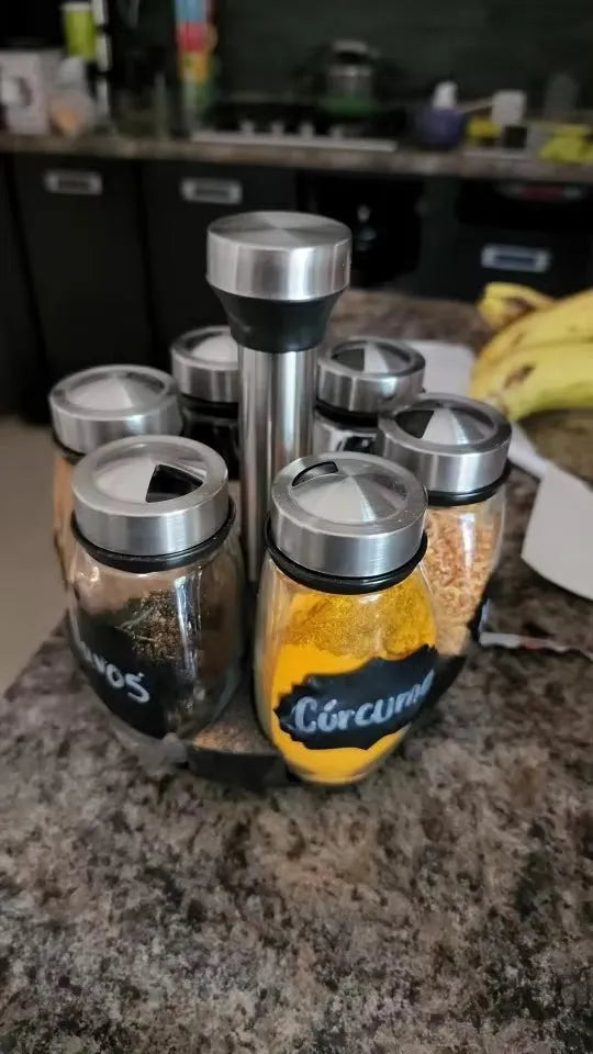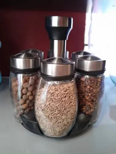 Másokkal ellentétben, fűszertartónk elegáns, forgatható kényelmet kínál élelmiszer-minőségű üveggel, biztosítva, hogy fűszereid frissek maradjanak, miközben modern konyhai eleganciát nyújt.